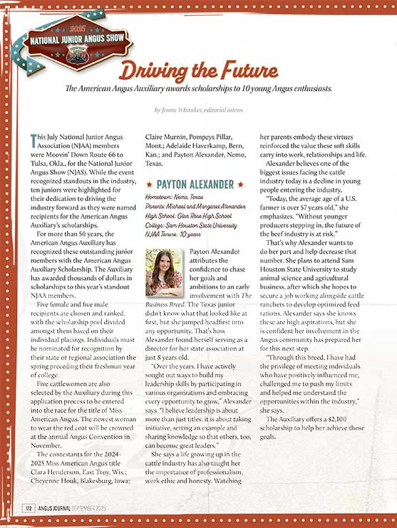 All scholarship applicants are encouraged to attend the National Junior Angus Show in early July.